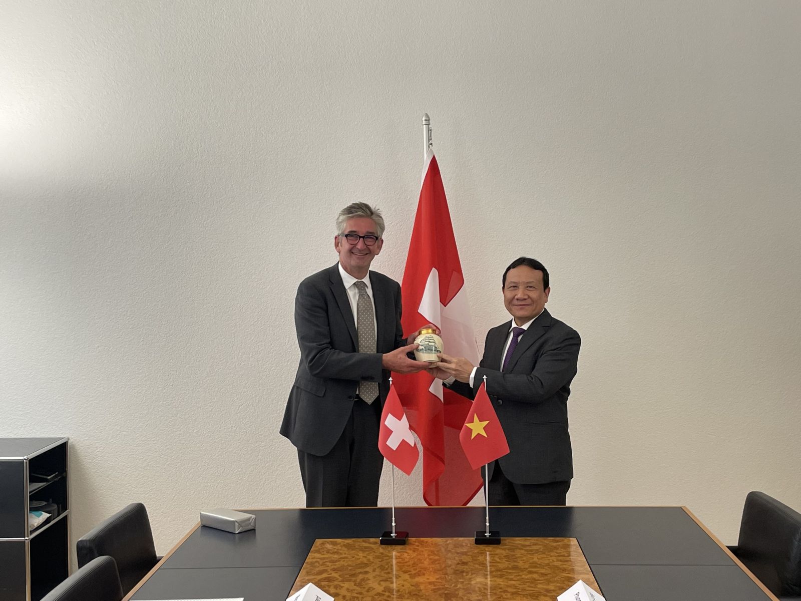 Phó Trưởng Ban Nguyễn Hồng Sơn tặng quà lưu niệm Đại sứ Markus Schlagenhof