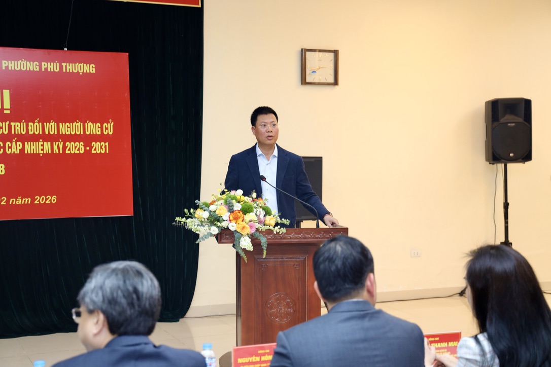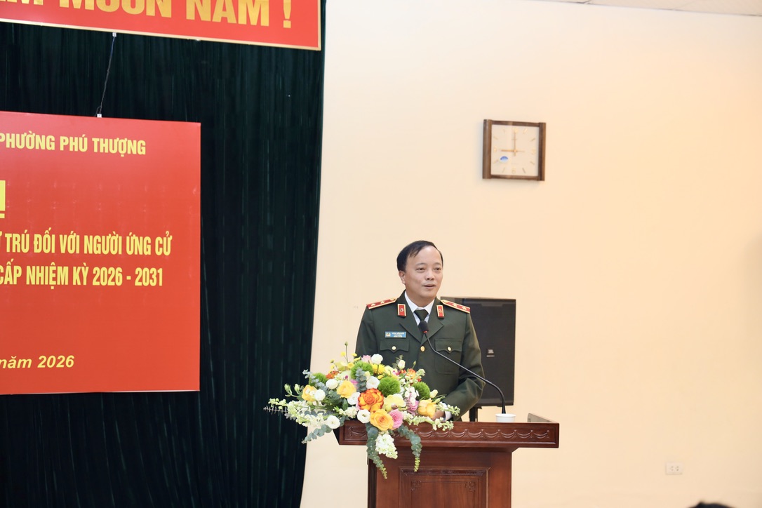 Tham dự Hội nghị, đại diện Ban Chính sách, chiến lược Trung ương có đồng chí Nguyễn Anh Tuấn, Ủy viên Trung ương Đảng, Phó Trưởng Ban. Dự Hội nghị có các đồng chí đại diện cơ quan của người ứng cử; đại diện Hội đồng nhân dân, Ủy ban Mặt trận Tổ quốc Việt Nam thành phố Hà Nội, lãnh đạo đảng ủy, chính quyền và Mặt trận Tổ quốc phường Phú Thượng và đông đảo cử tri Tổ dân phố số 18 phường Phú Thượng.