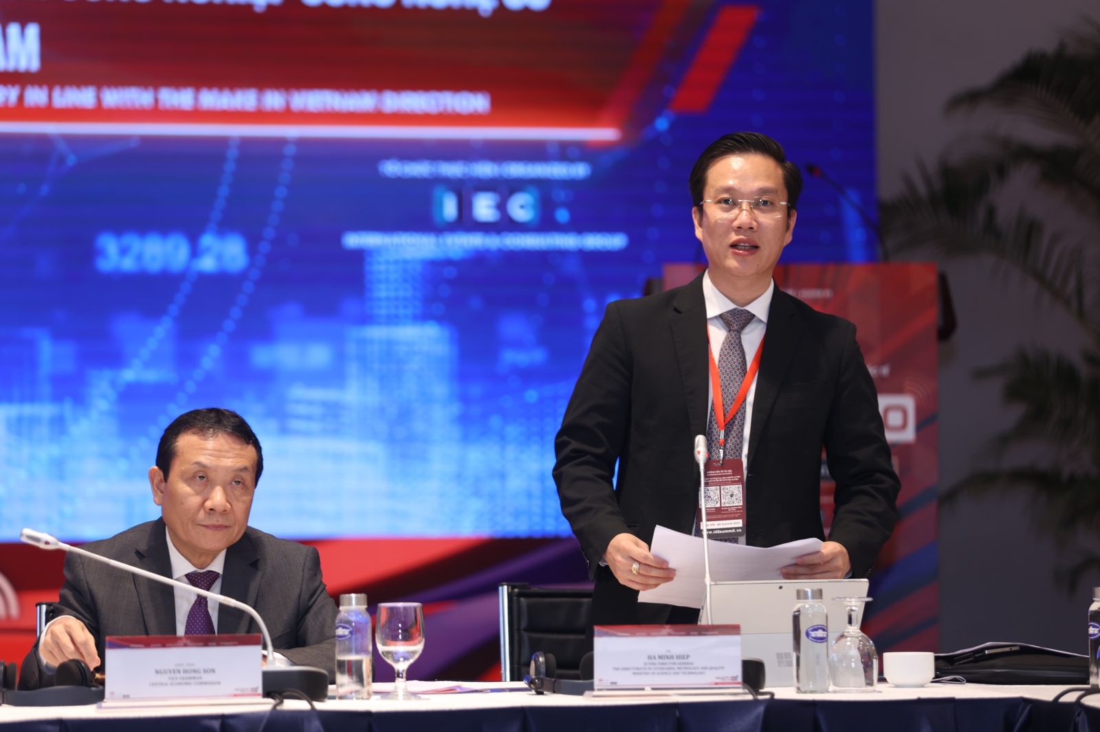 Phát biểu khai mạc và đề dẫn hội thảo, PGS.TS. Nguyễn Hồng Sơn, Phó Trưởng Ban Kinh tế Trung ương nhấn mạnh Nghị quyết số 29-NQ/TW ngày 17/11/2022 của Ban Chấp hành Trung ương Đảng khoá XIII về “tiếp tục đẩy mạnh công nghiệp hoá, hiện đại hoá đất nước đến năm 2030, tầm nhìn đến năm 2045” là nghị quyết chuyên đề đầu tiên của Đảng về công nghiệp hóa, hiện đại hóa. Nghị quyết là cơ sở, căn cứ chính trị quan trọng cho việc xây dựng những cơ chế, chính sách mới nhằm thúc đẩy quá trình công nghiệp hóa, hiện đại hóa, góp phần thực hiện thành công các mục tiêu phát triển đất nước đã đề ra tại Nghị quyết Đại hội XIII của Đảng. Nghị quyết số 29-NQ/TW đã xác định nội dung cốt lõi của sự nghiệp công nghiệp hóa, hiện đại hóa đất nước giai đoạn 2021-2030 là thúc đẩy ứng dụng mạnh mẽ khoa học - công nghệ, đổi mới sáng tạo, nhất là thành tựu của cuộc Cách mạng công nghiệp lần thứ tư; tạo bứt phá về năng suất, chất lượng, hiệu quả, sức cạnh tranh của các ngành, lĩnh vực và cả nền kinh tế; thực hiện chuyển đổi số toàn diện, thực chất, hiệu quả, bền vững; coi chuyển đổi số là phương thức mới có tính đột phá để rút ngắn quá trình công nghiệp hóa, hiện đại hóa. Nghị quyết số 29-NQ/TW cũng xác định công nghiệp công nghệ số là một trong sáu ngành công nghiệp nền tảng, trong đó sản xuất thông minh trên nền tảng mạng 5G là cốt lõi của công nghiệp công nghệ số.