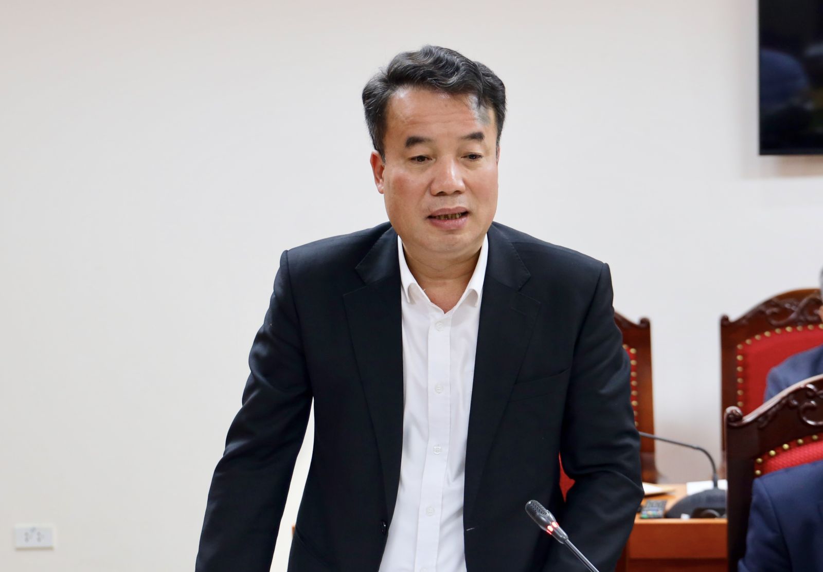 Đồng chí Nguyễn Thế Mạnh phát biểu tại cuộc họp