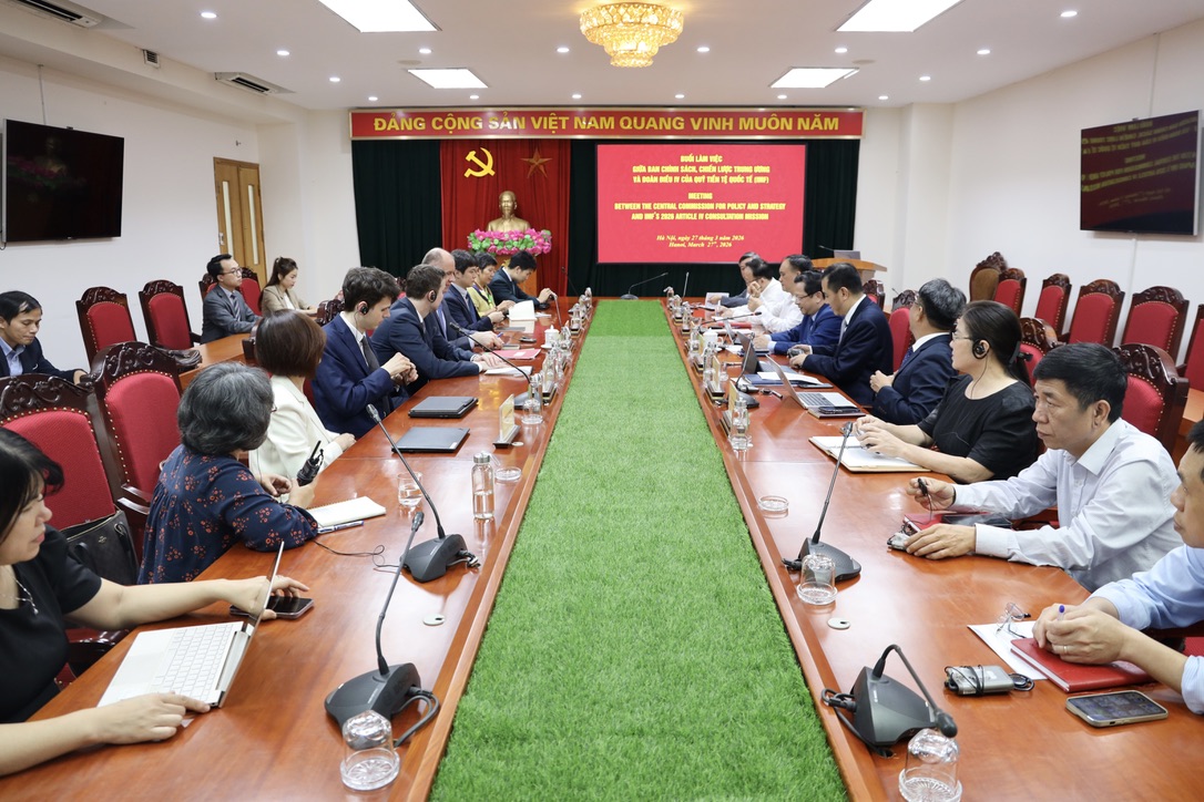 Đồng chí Phó Trưởng Ban Nguyễn Đức Hiển cảm ơn những ý kiến của ông Martin Sommer và đoàn công tác, đánh giá cao các khuyến nghị của đoàn về tăng trưởng kinh tế gắn với đảm bảo ổn định kinh tế vĩ mô. Trao đổi với đoàn công tác của IMF, đồng chí cho biết, thời gian qua Ban Chính sách, chiến lược Trung ương đã tham mưu cho Đảng về xây dựng kịch bản cho tăng trưởng kinh tế của Việt Nam, trong đó việc xây dựng kịch bản cũng đã quan tâm đánh giá tác động của những biến động trến thế giới gần đây. Đồng tình với các ý kiến của đoàn về sự linh hoạt trong điều hành chính sách tài khóa, tiền tệ để vừa tăng tưởng vừa giữ ổn định kinh tế vĩ mô, đồng chí Nguyễn Đức Hiển nhấn mạnh, trong giai đoạn 5 năm tới Việt Nam xác định bám sát 5 nội dung quan trọng: (1) Phải tiếp tục cải cách thể chế mạnh mẽ hơn để khơi thông nguồn lực; (2) Hoàn thiện thể chế để thúc đẩy sức sản xuất; (3) Phát triển khoa học công nghệ, đổi mới sáng tạo; (4) Khai thác tốt các thị trường xuất khẩu và thị trường trong nước; (5) Chú trọng quản trị thực thi, thúc đẩy tăng trưởng và kiềm chế tốt lạm phát. Đồng chí Phó Trưởng Ban thảo luận thêm với đoàn công tác về một số vấn đề hai bên cùng quan tâm như phát triển giáo dục đào tạo, thị trường lao động…; đề nghị đoàn Điều IV của IMF tiếp tục chia sẻ thông tin, kinh nghiệm và tăng cường hợp tác với Ban Chính sách, chiến lược Trung ương trong xây dựng các báo cáo chuyên đề, nâng cao năng lực cho cán bộ nghiên cứu của Ban trong thời gian tới.