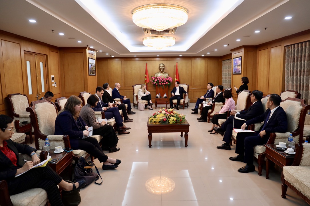 Đồng chí Nguyễn Đức Trung chào mừng bà Helene Budliger Artieda và đoàn công tác đã đến thăm Ban Chính sách, chiến lược Trung ương. Đồng chí Phó Trưởng Ban đánh giá cao mối quan hệ giữa hai nước đặc biệt là quan hệ kinh tế, thương mại đầu tư; đánh giá cao chương trình công tác của đoàn tại Việt Nam để thúc đẩy hợp tác song phương trên các lĩnh vực cũng như hoàn tất các thủ tục đàm phán để ký kết hiệp định giữa Việt Nam và Khối Mậu dịch tự do châu Âu EFTA. Đồng chí cho biết, Ban Chính sách, chiến lược Trung ương là cơ quan tham mưu, giúp việc của Ban Chấp hành Trung ương Đảng, trực tiếp và thường xuyên là Bộ Chính trị, Ban Bí thư trong việc lãnh đạo, chỉ đạo về phát triển kinh tế - xã hội; định hướng xây dựng và hoàn thiện thể chế kinh tế, hoạch định đường lối, chủ trương, chính sách, chiến lược, biện pháp lớn, quan trọng về kinh tế - xã hội. Trong chương trình làm việc tại Việt Nam của Đoàn lần này, Ban muốn lắng nghe những ý kiến của bà Quốc vụ khanh và đoàn công tác về những vấn đề hai bên quan tâm và thúc đẩy triển khai hợp tác giữa hai nước.