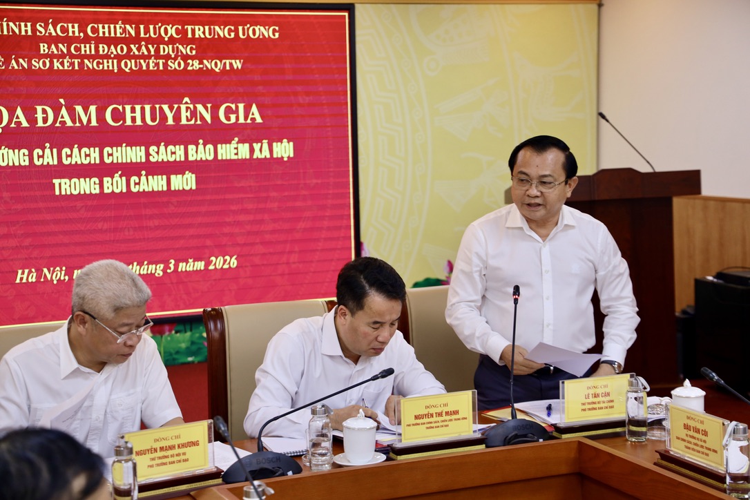 Đồng chí Lê Tấn Cận, Thứ trưởng Bộ Tài chính, Phó Trưởng Ban Chỉ đạo biết, đồng chủ trì Toạ đàm gợi mở: Nghị quyết số 28-NQ/TW là minh chứng rõ ràng cho sự quan tâm chỉ đạo của Đảng về an sinh xã hội. Về cơ bản cũng đã khắc phục hạn chế trong triển khai thực hiện như mở rộng đối tượng tham gia bảo hiểm xã hội, bảo hiểm thất nghiệp, bảo hiểm hưu trí, bổ sung trợ cấp thai sản… góp phần mở rộng quyền lợi của người tham gia bảo hiểm xã hội, bổ sung các quy định về chậm đóng, trốn bảo hiểm. Bộ Tài chính cũng đã trình Chính phủ ban hành đầy đủ các quy định về cơ chế tài chính, hướng dẫn chi hoạt động đầu tư của bảo hiểm xã hội, thể chế hóa, đưa vào nghị định và thông tư. Việc tổ chức triển khai cũng đã đạt được nhiều kết quả tích cực: số người tham gia bảo hiểm xã hội, bảo hiểm thất nghiệp đã tang, cơ bản đạt được mục tiêu đề ra. Đồng chí cho biết thêm về quá trình thực hiện Nghị quyết 28-NQ/TW với những kết quả khá tốt, tuy nhiên vẫn còn một số tồn tại, hạn chế, vướng mắc, từ đó cần đổi mới căn bản, thực chất chính sách bảo hiểm xã hội, khắc phục điểm nghẽn về cơ chế, chính sách. Đồng chí nêu một số tồn tại về đối tượng tham gia Bảo hiểm xã hội bắt buộc, căn cứ đóng bảo hiểm xã hội, chia sẻ thông tin, dữ liệu về việc làm, xử lý vi phạm.