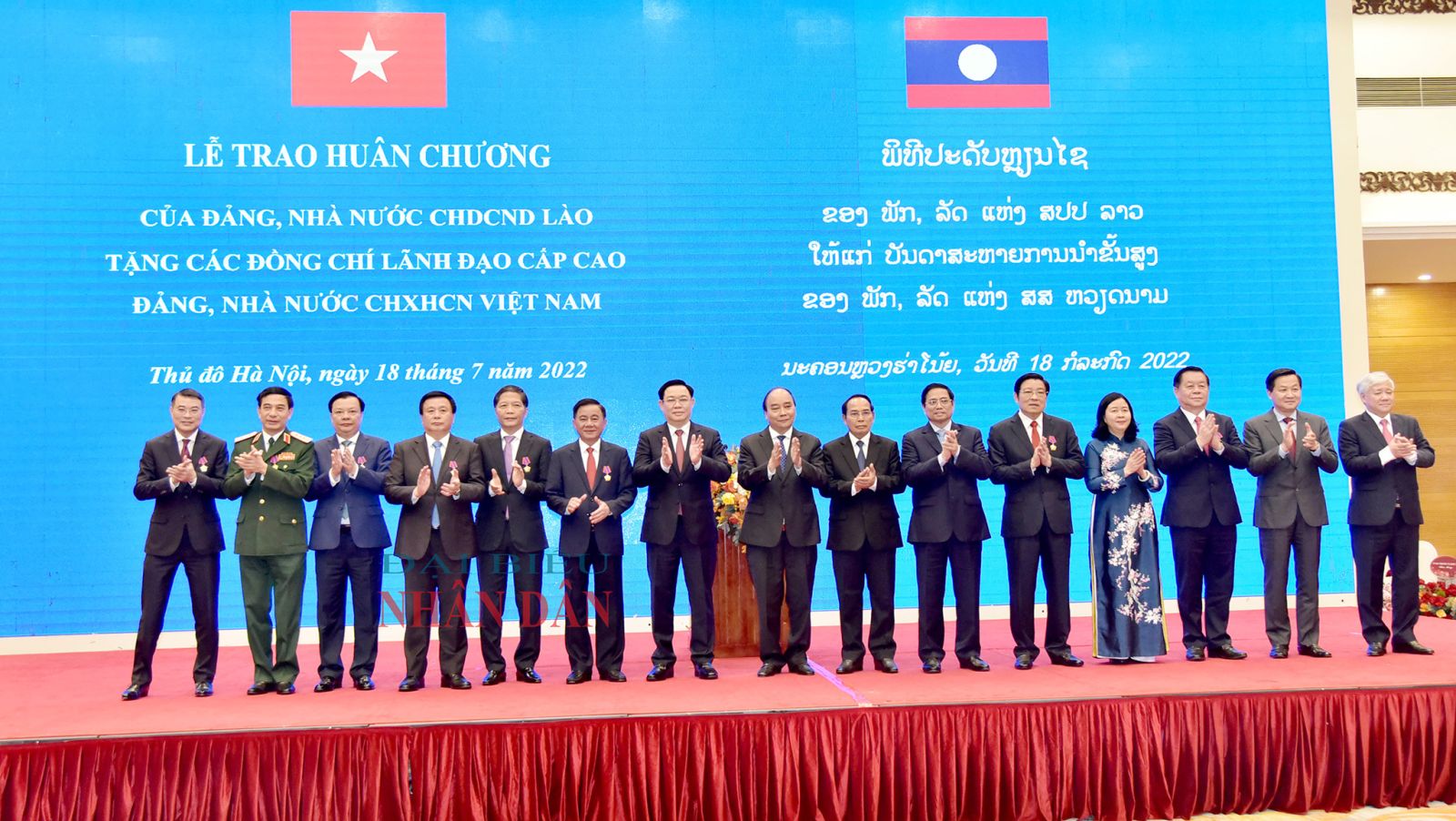 Tại buổi lễ, được sự ủy quyền của Lãnh đạo Đảng và Nhà nước Lào, Ủy viên Bộ Chính trị, Thường trực Ban Bí thư Trung ương Đảng Nhân dân cách mạng Lào, Phó Chủ tịch Nước Lào Bounthong Chitmany đã trao tặng Thủ tướng Chính phủ Phạm Minh Chính và Chủ tịch Quốc hội Vương Đình Huệ Huân chương Vàng quốc gia. Đây là Huân chương cao quý nhất của Đảng, Nhà nước Lào nhằm ghi nhận công lao, sự đóng góp to lớn của Thủ tướng Chính phủ Phạm Minh Chính và Chủ tịch Quốc hội Vương Đình Huệ đối với việc củng cố, vun đắp mối quan hệ hữu nghị vĩ đại, tình đoàn kết đặc biệt và hợp tác toàn diện giữa hai Đảng, hai Nhà nước và nhân dân hai nước trong suốt thời gian qua.