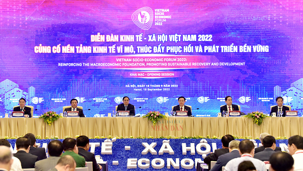 Thủ tướng Chính phủ Phạm Minh Chính, Chủ tịch Quốc hội Vương Đình Huệ và các đại biểu dự Diễn đàn Kinh tế - Xã hội Việt Nam 2022