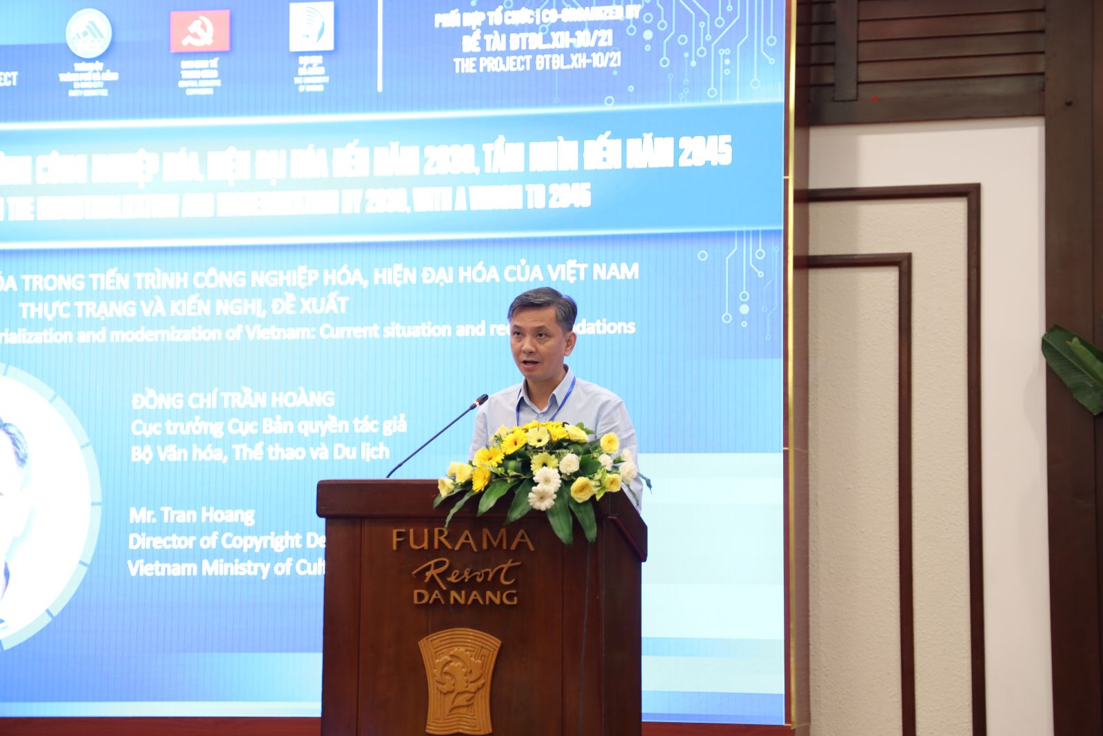 Ông Trần Hoàng, Cục trưởng Cụ Bản quyền tác giả, Bộ Văn hóa, Thể thao và Du lịch phát biểu tham luận