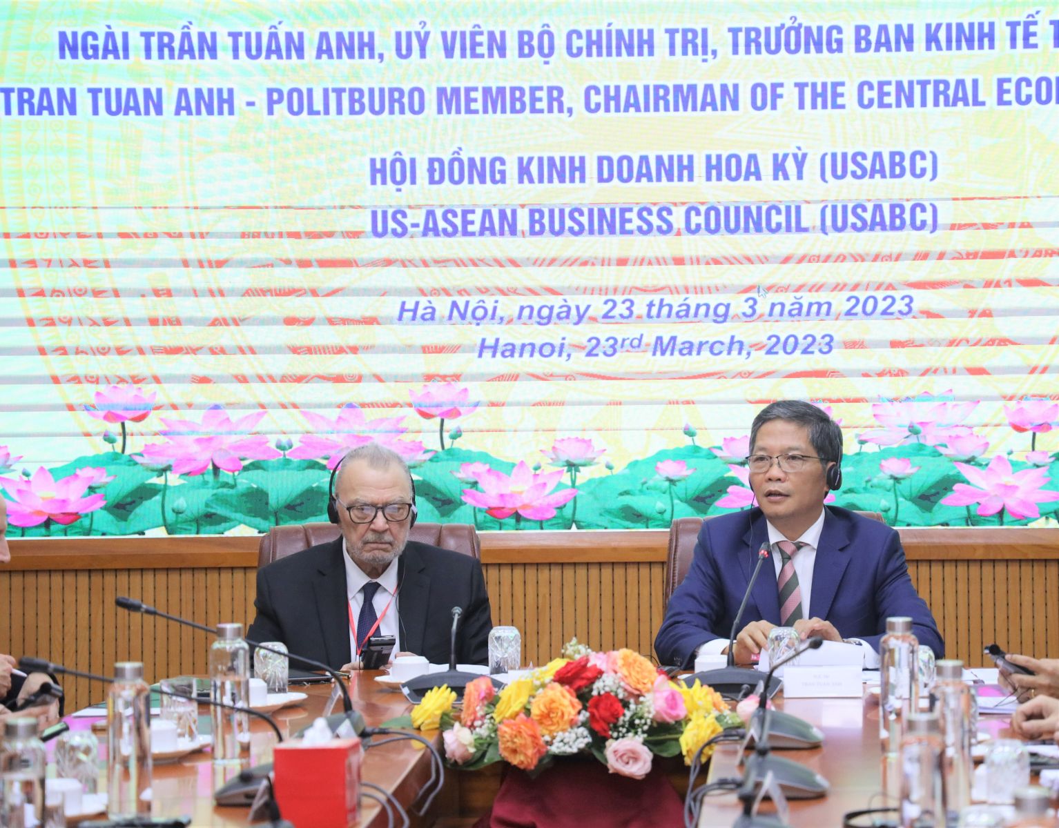 Tại buổi làm việc, hai bên đã thông tin, trao đổi về tình hình, chiến lược phát triển của Việt Nam, một số vấn đề ưu tiên để thúc đẩy quan hệ hợp tác song phương; kiến nghị, đề xuất hợp tác đầu tư kinh doanh giữa hai nước, đặc biệt là trong các lĩnh vực mà các doanh nghiệp Hoa Kỳ quan tâm, có thế mạnh và Việt Nam đang có nhu cầu như y tế, năng lượng xanh, năng lượng tái tạo, các dịch vụ tài chính, kinh tế số, khoa học công nghệ… Đồng chí Trần Tuấn Anh đánh giá cao và ghi nhận những kết quả tích cực hai bên đã đạt được; hoan nghênh doanh nghiệp Hoa Kỳ mở rộng đầu tư, đẩy mạnh nghiên cứu - phát triển, đổi mới sáng tạo. Đồng chí đề nghị USABC tăng cường hơn nữa vai trò cầu nối thúc đẩy một cách hiệu quả, thiết thực quan hệ hợp tác toàn diện Việt Nam - Hoa Kỳ, phù hợp với nhu cầu, lợi ích của cả hai bên; thúc đẩy hợp tác đa dạng hóa và bảo đảm chuỗi cung ứng; tiếp tục mở rộng hơn nữa hoạt động kinh doanh đầu tư.