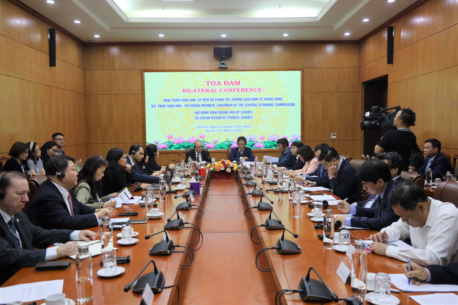 Đồng chí Trần Tuấn Anh, Ủy viên Bộ Chính trị, Trưởng Ban Kinh tế Trung ương trao đổi với đoàn USABC