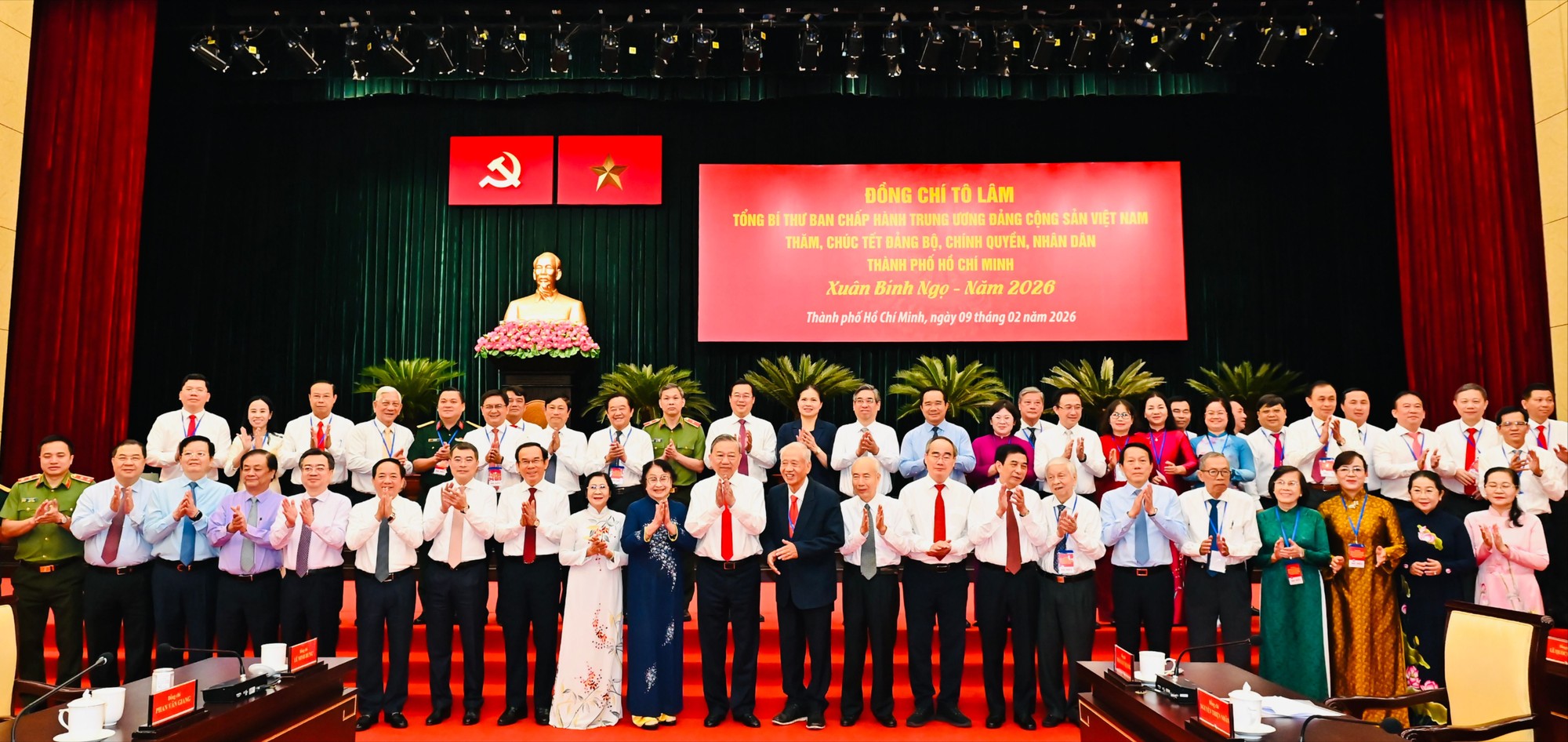 Tổng Bí thư Tô Lâm và đoàn công tác của Trung ương đã đến thăm, chúc tết Đảng bộ, chính quyền và nhân dân TPHCM nhân dịp Tết Bính Ngọ 2026. Ảnh: VIỆT DŨNG