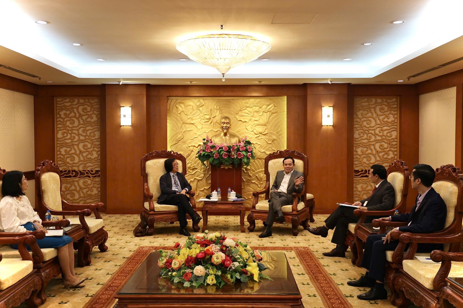 GS. Trần Văn Thọ đã cảm ơn sự đón tiếp của đồng chí Trần Lưu Quang và chúc mừng đồng chí Trần Lưu Quang mới nhận nhiệm vụ là Trưởng Ban Kinh tế Trung ương. GS. Trần Văn Thọ trao đổi một số ý kiến của mình về những nút thắt trong phát triển kinh tế Việt Nam, nhất là vấn đề liên quan đến cải cách thể chế, phát triển doanh nghiệp... Theo Giáo sư, Việt Nam cần có những chính sách đột phá để thúc đẩy doanh nghiệp trong nước đặc biệt là doanh nghiệp vừa và nhỏ phát triển theo hướng hiện đại, đổi mới khoa học công nghệ; hỗ trợ doanh nghiệp vừa và nhỏ tiếp cận thị trường, vốn, công nghệ, lao động và chính sách; khuyến khích doanh nghiệp trong nước kết nối với doanh nghiệp FDI và tham gia vào chuỗi giá trị toàn cầu.