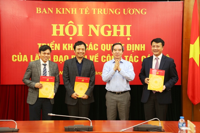 Hội nghị đã công bố các quyết định về công tác cán bộ của Ban Kinh tế Trung ương. Theo Quyết định của Trưởng Ban Kinh tế Trung ương, Đồng chí Đặng Đức Long, Nguyên Giám đốc Trung tâm Thông tin Kinh tế được bổ nhiệm giữ chức vụ Giám đốc Trung tâm Thông tin, phân tích và dự báo kinh tế, Ban Kinh tế Trung ương. Đồng chí Hà Hải An, Phó Vụ trưởng Vụ Hợp tác quốc tế, Ngân hàng Nhà nước được bổ nhiệm giữ chức vụ Vụ trưởng Vụ Kinh tế quốc tế và Hội nhập, Ban Kinh tế Trung ương. Đồng chí Nguyễn Tú Anh, Phó Vụ trưởng Vụ Chính sách tiền tệ, Ngân hàng Nhà nước Việt Nam được tiếp nhận và bổ nhiệm Phó Vụ trưởng giao nhiệm vụ phụ trách Vụ Kinh tế tổng hợp. Đồng chí Ngô Trí Tuệ, Nguyên Tổng Biên tập Tạp chí Kinh tế được bổ nhiệm Hàm Vụ trưởng, Tổng Biên tập Tạp chí Kinh tế, Trung tâm Thông tin phân tích và dự báo kinh tế. Hội nghị cũng công bố Quyết định của 5 đồng chí Phó Vụ trưởng các vụ.