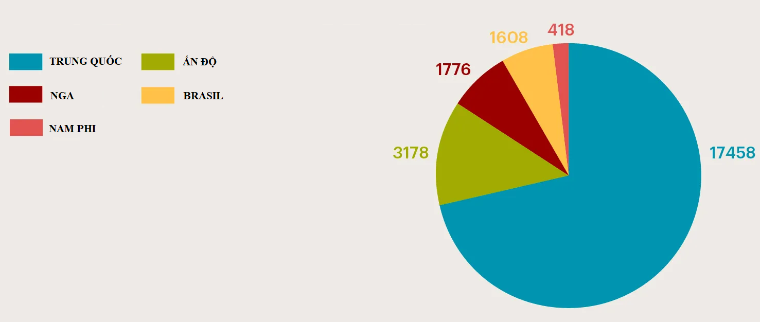 Hình 3. GDP các nước khối BRICS năm 2021, tỷ USD