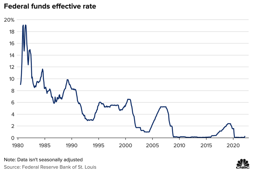 Lãi suất của Fed từ thập niên 1980 đến nay.